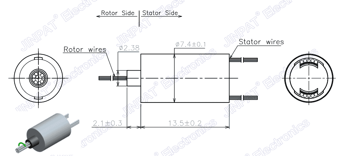 Bagues collectrices conductrices à capuchon ultra miniature LPMS OD 6,8 ~ 7,4 mm, longueur 13,5 mm, 10 voies * 1A, petit facteur de forme, conception de haute précision, résistance aux hautes et basses températures, faible résistance de contact du produit, faible couple, fonctionnement fiable. Cette série de bagues collectrices est utilisée pour les instruments et équipements de haute précision et convient aux environnements avec un espace d'installation difficile.Contactez-nous