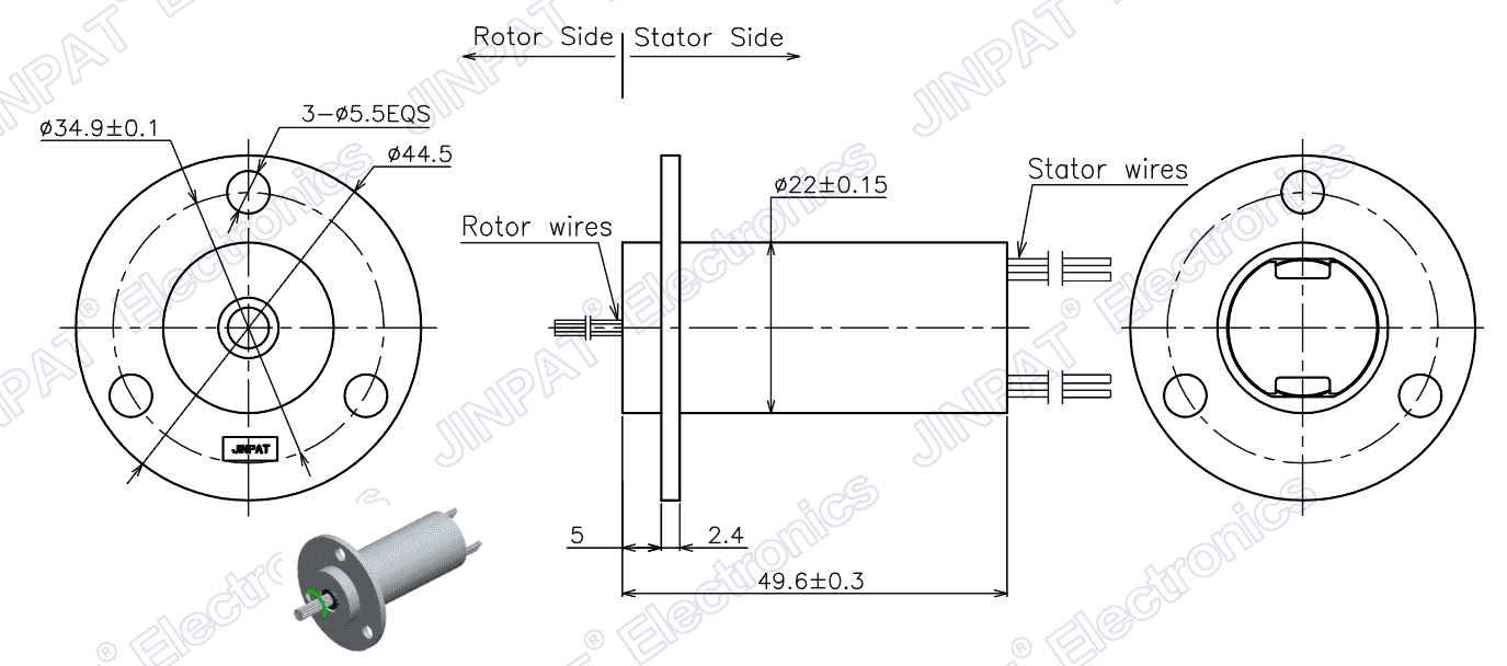 Bague collectrice de type capuchon de taille moyenne standard LPC-30, avec un diamètre extérieur de 22 mm, une longueur de 49,6 mm, 30 canaux * 2A, adopte une technologie nationale de traitement de surface de haut niveau, a une précision de conception élevée, une apparence compacte et une installation facile .
