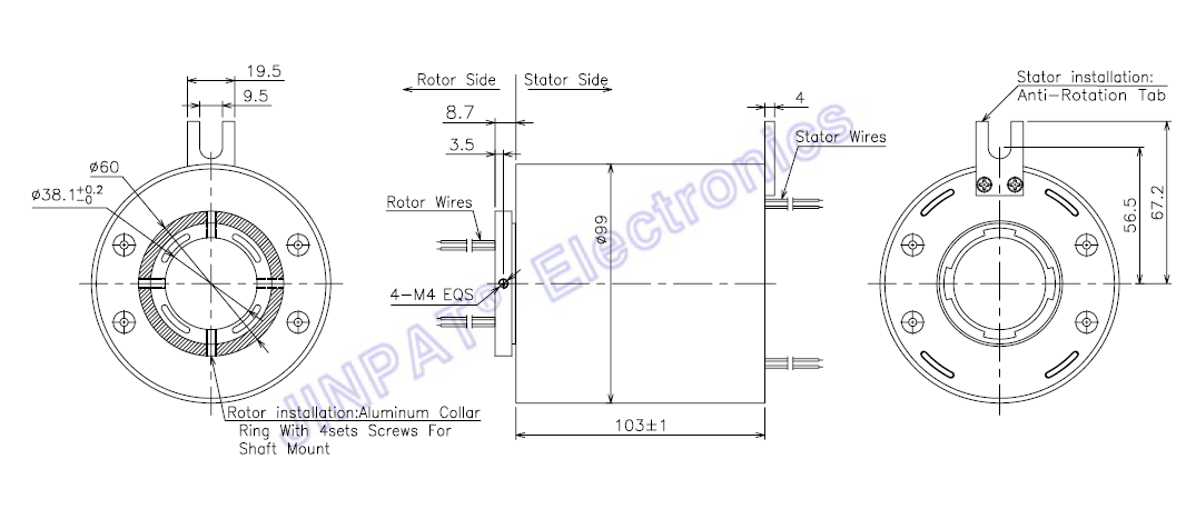 Bague collectrice traversante standard LPT-038, diamètre intérieur de 38,1 mm, diamètre extérieur de 99 mm, 6 voies * 5 A, peut être utilisée pour poser des canalisations hydrauliques ou pneumatiques. Cette conception utilise une technologie de contact à brosse en fibre longue durée et peut être utilisé dans de nombreuses situations difficiles.Atteignez des performances ultimes dans vos applications.Contactez-nous