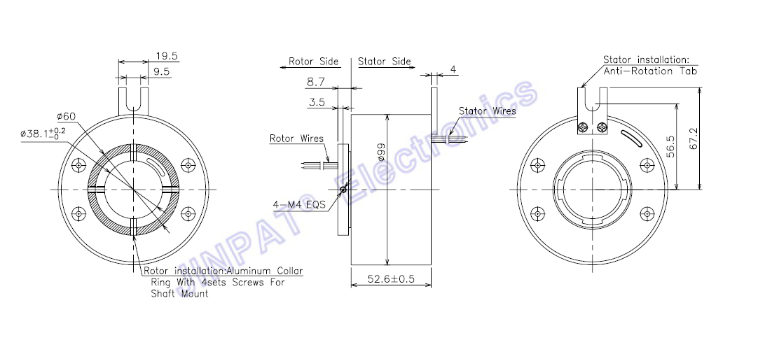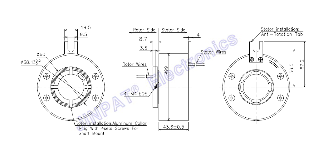 Bague collectrice traversante standard LPT-038, diamètre intérieur de 38,1 mm, diamètre extérieur de 99 mm, 6 voies * 5 A, peut être utilisée pour poser des canalisations hydrauliques ou pneumatiques. Cette conception utilise une technologie de contact à brosse en fibre longue durée et peut être utilisé dans de nombreuses situations difficiles.Atteignez des performances ultimes dans vos applications.Contactez-nous